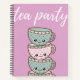 Portátil de moda femenina rosa con el mensaje "Tea fiesta" e ilustraciones.