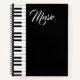 Este cuaderno es negro, en la parte delantera y trasera, con un teclado de piano junto a la espiral. Puede personalizar del texto con su propio título, nombre, presupuesto o asunto. Estos portátiles versátiles están disponibles en tres estilos y cuentan con una selección de seis colores en espiral. Lleve su diseño personal aún más lejos eligiendo una de las ocho opciones de diseño de página, incluyendo College Ruled, Graph y Recipe.