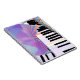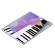 Cuaderno con mi colorido diseño de teclado abstracto con rayas azules y naranjas fluidas y tonos púrpura y azul.