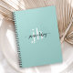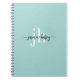 Con una tendencia hacia un estilo simple con atractivo de diseñador, este diseño de cuaderno moderno presenta su nombre escrito en una escritura de caligrafía manuscrita en negro con colas iniciales y finales para agregar un aspecto elegante. Sus iniciales y apellido se presentan en una tipografía serif industrial moderna en blanco debajo de la caligrafía sobre un fondo de color teal aqua claro. ¡El resultado es elegantemente usted! Tenga en cuenta: Al personalizar su nombre en este artículo, asegúrese de dejar los símbolos de cuadro antes y después de su nombre. Esto es lo que hace que las hermosas colas se impriman antes y después de su nombre.