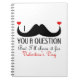Divertido bigote negro con el corazón rojo y el texto que bigote (debo hacer) una pregunta Pero lo afeitaré por El día de San Valentín. Puede personalizar el color blanco del bloc de notas.
