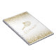 Diseño de cuaderno monograma de bonito dorado y blanco de raqueta de tenis y bolas con un moderno y moderno borde purpurina de oro de moda y personalización del nombre de escritura femenina de vientre.