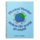 La Terapia Física Hace que el mundo gire. Un lindo y inspirador regalo de cita de PT para tu terapeuta físico favorito. El cuaderno incluye a un grupo de personas que se toman de la mano alrededor del planeta azul y verde de la Tierra. Reúnase para hacer un cambio ayudando a la gente con este motivacional monogramado fisioterapeuta presente.