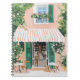 El Gouache se encuentra en una pintoresca cafetería con persianas verdes y balcón florido con vistas a una vibrante zona de estar al aire libre. La luz del sol se filtra, invitando a los clientes a disfrutar de un momento tranquilo en medio de la vegetación floreciente.
