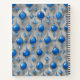 Un patrón lujoso de gemas azules sobre fondo plateado, realizado en acuarela. Un diseño que evoca elegancia y sofisticación.