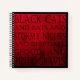 Fondo rojo oscuro con textura negra y texto negro que dice: 'Gatos y murciélagos y noches tormentosas y nubes oscuras profundas y tumbas brumosas'. Un encantador regalo alternativo para el tipo alternativo. Este pequeño libro es tan versátil: usar como cuaderno, diario, diario de recetas o para esbozar. Perfecto para una pizarra oscura. En nuestra tienda de Zazzle se pueden encontrar muchos otros cuadernos y artículos de papelería.