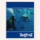 Este cuaderno en espiral se muestra con una foto impresa de tiburones y buzos. Personalizar este artículo o compra como se muestra. Imagen con licencia