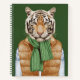 Este diseño presenta un invierno tigre listo para llevar su chaleco, pañuelo de cuchillos verde y suéter de Navidades.