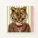 Este diseño presenta a un tigre usando una chaqueta inteligente y corbata de arco rojo.
