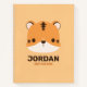 Un bonito diseño para alegrar el día. Este diseño presenta un bonito ilustracion de tigre personalizado con un nombre personalizado en sans modernos marrones serif estilo tipo de letra en naranja pastel. Perfecto de vuelta a los regalos escolares para los niños.