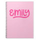 Crea tu propio cuaderno en blanco rosado personalizado para tu hija llamada Emily. Puede cambiar el tamaño y el color del diseño del gráfico de texto para crear su propio diseño personalizado. Todos los colores son personalizables en este diseño.
