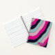 Si le gusta tomar notas y escribir composición ya sea para fines personales, escolares o de negocios, puede considerar agregar una portada de un bloc de notas que atraerá la atención. Este arte digital contemporáneo presenta un divertido tema de moda visual ondulante a través de un esquema multicolor compuesto por tonos rosa cálido, rosa pastel, azul claro y oscuro, con líneas artísticas de rayas onduladas. Las curvas de purpurinoso de Relieve metalizado dorado incorporadas le agregan creatividad a los detalles gráficos. Puede personalizar esto poniendo un nombre, un asunto o cualquier texto que prefiera dentro del marco de la etiqueta de forma oblonga adorable.