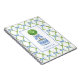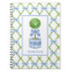 El diseño de este cuaderno de tema personalizado presenta un fondo de entramado azul y verde muy moda con un tema de coordinación en un jarrón de jengibre chinoiserie azul y blanco.