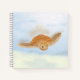 Tortuga marina marrón nadando cerca del fondo arenoso del océano, con la luz del sol de verano filtrándose a través del agua azul y clara por encima. El diseño es muy atractivo, con una temática cálida en tonos pastel, tropical, arena y playa. Trae los trajes de baño y las tubos de buceo.
