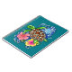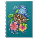 Dibujo original de Sandra Gale de una tortuga marina tropical nadando en una ola de agua azul, sobre dos coloridas flores de hibisco. Gran diseño para surfistas, bañistas, conservacionistas, amantes de la naturaleza o cualquiera que aprecie esas criaturas tranquilas, suaves y únicas que nadan continuamente por los inmensos océanos durante años.