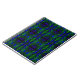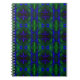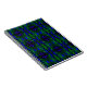 Cuaderno Traços azuis 'flutuando' sobre fundo verde.