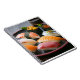 This beautifully composed notebook features an authentic sushi assortment presented on a traditional black lacquer plate with red trim. The vivid colors of fresh seafood—like salmon, tuna, uni, and ikura—pop against the dark background, creating a design that’s both elegant and appetizing.