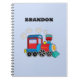 Cuaderno azul, tren, transporte, locomotora, vehículo para niños. Cuaderno personalizado para niños de color azul acero. Personalízalo con el nombre de tu hijo.