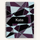 This simple notebook has an abstract triangle pattern that features grey, white, maroon, and black colors. Its super simple and easy to edit this notebook and place your own name or what this notebook is for where the word Kate is located.