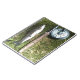 Cuaderno trucha arco iris y carrete de pesca con mosca
