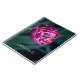 Doble flor de tulipán rosado sobre un fondo follaje oscuro, fotografía.