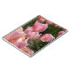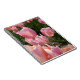 Tulipanes rosas en un parterre florido con motivos de luz solar en los pétalos.