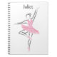 Un regalo perfecto para tu bailarina, profesora de baile o coreógrafa favorita, este cuaderno incluye una bailarina pintada en un tubo rosa con zapatos de punta rosa. El nombre de la parte superior se puede personalizar.