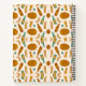 Two spiral-bound notebooks with a playful fall pattern of brown pumpkins, orange leaves, and green shapes on a white background. Both front and back show the same design.