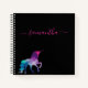 A fantasy unicorn in turquoise, purple and a bit pink for a teen girl. A chic black background. Personalize and add your name on the front. The name is written with a large modern hand lettered style script. Purple colored letters. To keep the swashes only delete the sample name, leave the spaces or emoji's in front and after the name.