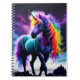 Un unicornio oscuro con una forma de arco iris bajo un cielo tormentoso