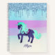 Cuaderno Unicornio púrpura y Verde azulada con Purpurina de