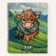 Cuaderno Vaca Highland con Scott Green Tartan Scarf