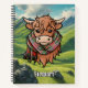 Personalizado de la vaca Highland con bufanda de tartán Stewart Royal. Panorama de fondo personalizado en ambas portadas. Texto personalizado.