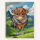 Personalizado de la vaca Highland con bufanda de tartán Wilson. Panorama de fondo personalizado en ambas portadas. Texto personalizado.
