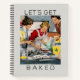Gracioso bloc de notas de la receta de calabacín para la tarta con una escena de cocción vintage titulada VAMOS A RECOGER con un fondo gris cambiable.