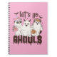 Diseño divertido y lindo de Halloween en camisetas, tazas, bolsas, almohadas, botones y más que presenta tres fantasmas divertidos de Halloween con cuernos de diablo y sombreros de bruja, murciélagos, flores, calabaza de linterna, y texto que dice ¡Vamos a los fantasmas!