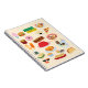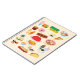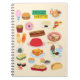 Un arte vectorial de diferentes variedades de comida como algodón de azúcar, hamburguesa, gambas fritas, gyoza, pizza, papas fritas, hotdog, donut, corndogs, jalea, ramen, lasaña, sundae, helado, muffin, nachos, mochi, sushi, sandwich, bola de arroz, y taco.