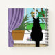 Gato negro sentado en la contraparte de la ventana mirando por la ventana a los pájaros en el alimentador de aves. HD t.v. para gatos