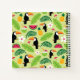 Colorido patrón veraniego sin fisuras con divertidos tocanes, jugosas sandías, piñas, flores tropicales y deliciosos cocos jóvenes.