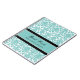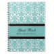 El cuaderno espiral del libro de visitas del boda en azules turquesas, modelo floral clásico blanco y negro del damasco, con el texto adaptable para añadir su propio nombre y el boda fecha.