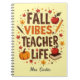 Mantén tus planes de lección, ideas y pensamientos acogedores en estilo con este cuaderno de Fall Vibes Teacher Life, diseñado en un estilo de otoño retro lindo con tonos cálidos de otoño. Perfecto para profesores que aman el encanto estacional, las especias de calabaza y la creatividad en el aula. Este bloc de notas se puede personalizar con su nombre en la cubierta posterior, lo que lo hace práctico y significativo. Un regalo de otoño para educadores, compañeros de trabajo o cualquiera que disfrute de una mezcla de acogedoras vibraciones y diseño de inspiración retro.
