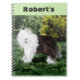 Un cuaderno de encargo que ofrece una pintura de un perro pastor inglés viejo en el jardín, de mi pintura de cristal original. Perfeccione para los amantes del perro y este cuaderno está listo para ser personalizado con un nombre o su propio texto. alfarero del ©Annabel