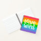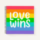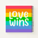 Esta obra de arte muestra un arcoíris colorido con las palabras Love Wins.