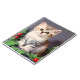 Un portátil con un gatito vintage de Navidad y un hueco! Un gatito adorable, con ojos verdes, posa con ramos de holly. ¡Un buen regalo para la temporada de Navidades y para los amantes del gato!