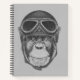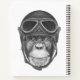 Este diseño presenta un retrato de un chimpancé que usa casco de motocicleta vintage y meneo.