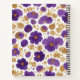 Flores violetas delicadas se combinan con hojas doradas sobre un fondo blanco, creando un diseño elegante y sofisticado. Un toque de lujo y refinamiento.