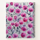 Un patrón de flores violetas que destacan sobre un fondo de hojas grises y blanco, creado con técnica de acuarela, dando un toque suave y delicado.