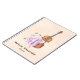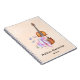 Portátil de espiral personalizado con diseño femenino. Ilustrado con una acuarela que representa un violín de madera, algunas zapatillas de ballet rosadas descansan sobre él y decoradas con flores y mariposas. Colocado en un fondo de color rosa melocotón.