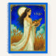 Journal in an illustration of Virgo portraying a serene maiden symbolizing purity, grace, and wisdom. Surrounded by golden wheat under a radiant full moon, she holds a basket of harvest fruits, reflecting Virgo’s earthy nature and nurturing spirit.