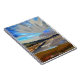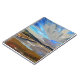 Diseño artístico de un lago con el dramático cielo reflejado en el agua del lago. Las colinas y los campos rodean el lago.